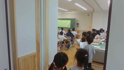 1年生が学校探検で6年生の教室に来ました。どのような学習をしているのか6年生の様子に興味津々でした。1年生が手を振ると、6年生も嬉しそうにしてました。1年生と6年生でこれからいろいろな場面で交流できることが楽しみです。