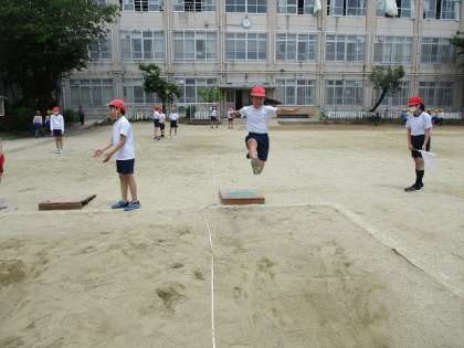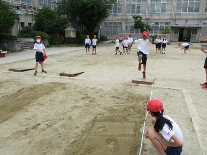 この日は3年生での経験を思い出して、計測や砂のならし方を確認して学習を進めることができました。次の時間は自分に合った助走距離について考え、活動に取り組みます。それぞれが自己記録の更新に向けてがんばる姿が楽しみです♪