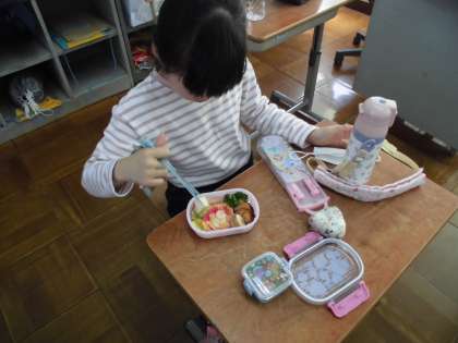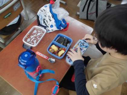 がっこうにかえってから おべんとうを たべました。