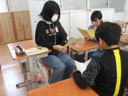 国語科の学習で、「帰り道」という物語文の学習に取り組みました。出来事に対する登場人物のとらえ方や心情をを考えた後、登場人物の心情の変化をとらえたり、人物像について考えたりしました。