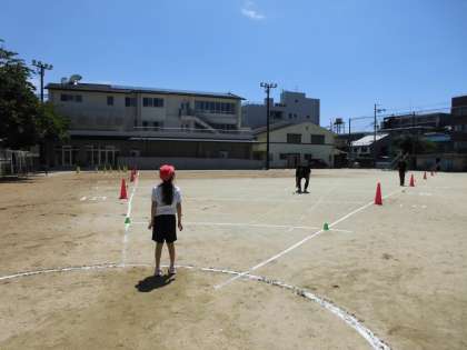 たいりょくテストで ボールなげを しました。