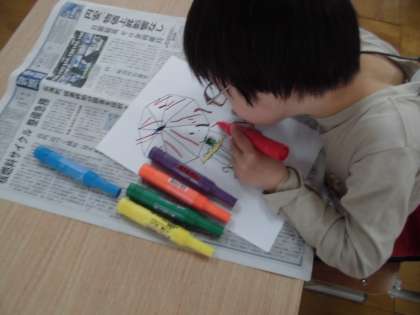 きれいに もようをかいたり いろをかえたり しています。