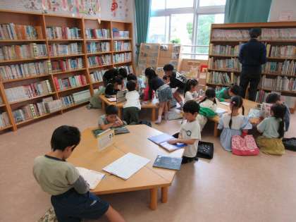 図書館に行って、本の借り方や図書館で過ごすときの約束を確かめました。