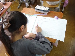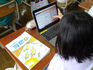 算数の学習では、単元のまとめとしてこれまで学習した内容のプリントに取り組んだり、GIGA端末を使って自分で課題を決めたりして、復習をしました。