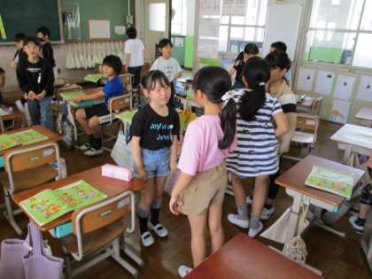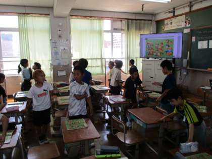 3年生は、外国語活動の学習に楽しみながら取り組んでいます。今回は、「How are you?」「I'm 〇〇」のやり取りをしました。ジェスチャーを使いながら、やり取りすることができました。