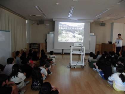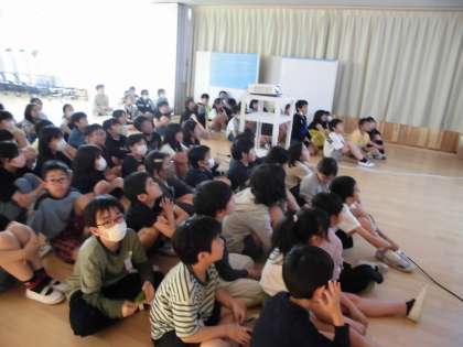 花背山の家の宿泊学習に向けて、学年集会を行いました。花背山の家の写真を見たり、活動を紹介したり、班の役割や係活動などについて話したりしました。「楽しそう!」「レクリエーション係になりたい!!」などとたくさんの声が聞こえ、ドキドキわくわく、心が躍っているような様子でした。これから宿泊学習に向けて協力して取組を進めていきます。