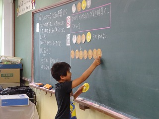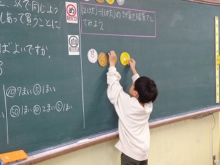 これまで筆算でしていた計算を暗算でどのように考えるのかを話し合いました。わる数の九九の計算を使うことで解くことに気付くことができました。筆算だけでなく、暗算も活用しながら、1けたでわるわり算を正確に解けるようになってほしいと考えています。