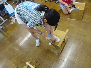 安全に気を付けて、「うまく切れた」「のこぎりがうまく動かない」など、悪戦苦闘しながら、材料を切りそろえることができました。