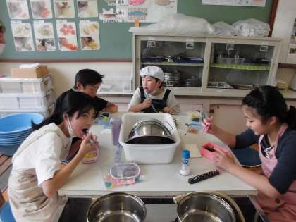 自分たちで作った料理の味に感動し、とてもうれしそうに食べていました。また、初めに野菜を観察し、ゆでた後では、色や硬さが変わっていることにも気づきました。
