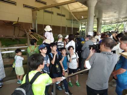 今日は朝から暑いからか、パンダも室内で朝食中です。