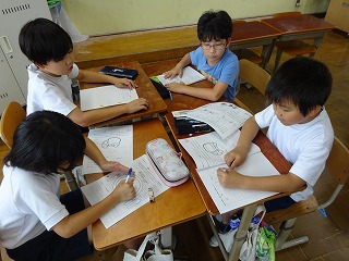 4年 話し合いタイムの様子 グループ交流から全体交流で考えを広げて