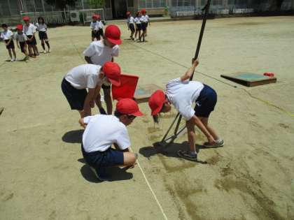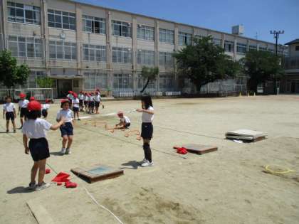 体育科「はばとび」の学習では、第2時に入りました。前回準備の仕方を練習したので、スムーズに準備することができました。自分に合った場で練習したのち、記録を測定しました。測定するときにも、それぞれの役割に分かれて協力して取り組みました。ふりかえりを見ていても、手を上げることや、目線を上げることなど様々なポイントを見つけることができました。記録が伸びる喜びを実感できるよう支援していきます。