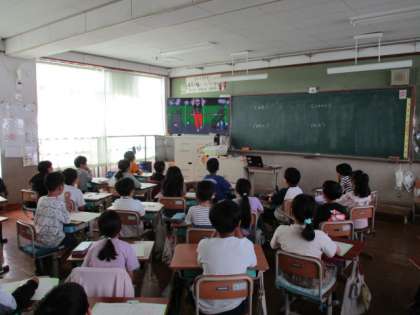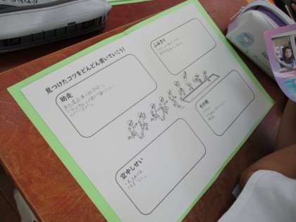 そこで、今日は動画などを参考にして、記録を伸ばすコツを見つける活動をしました。【助走・踏み切り・空中姿勢・その他】の視点でコツを見つけることができました。目線を少し上げる、手を大きく上げてから振り下ろすなど、今まで知らなかったポイントにも気づくことができました。いろいろなコツを知って「早くはばとびがしたい!」とそわそわしている子どもたちでした。
