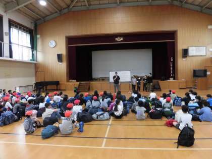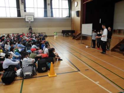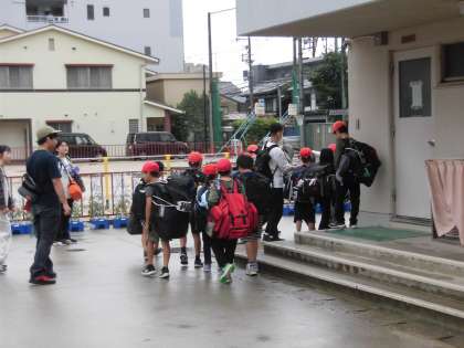 あいにくの雨模様となりましたが、出発式では「雨でしかできないこともあります。」「すばらしい経験をみんなでしましょう。」と先生の話がありました。みんなで宿泊学習のめあてを確かめていざ出発です。元気で楽しい3日間にしたいと思います。