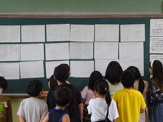 自分の考えを友だちと交流して、さらに考えを広げることができました。友だちの自学から見て学ぶことは大切なことです。今後もお互いに高め合い、自ら学ぶ力をつけていきたいと考えています。