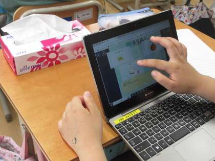 健康的な朝食に「炭水化物」「たんぱく質」「食物繊維」「あたたかい食べ物」「水分」の5つの条件があることを教わったうえで、ロイロノートを使って体によい朝食の献立を考えてみました。