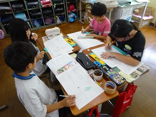 作品が完成した後には、違うグループの作品を見て、作品のよさを味わうことができました。また、片付けも協力して取り組むこともできました。