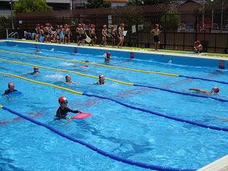 今回の学習では、検定をしてこれまでの学習の成果を確かめました。はじめの時間よりも長い距離を泳げるようになった子、新しい泳ぎ方でできるようになった子など、これまで頑張ってきたことを出し切ることができました。