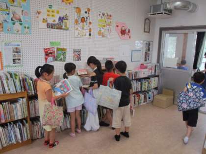 今日は、夏休みに読む用の本を図書館に借りに行きました。いつも読んでいる本の種類を選んだり、読んだことがない本に挑戦したりと思い思いに活動しました。熱い中ですが、「読書の夏」にしてほしいと思います。