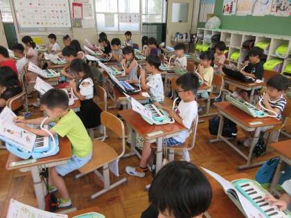 音楽科の学習で鍵盤ハーモニカを使って学習しました。