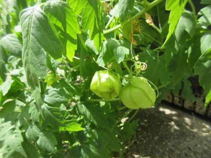 ふうせんかずらはちいさなはなをさかせたあと、ふくろのような「み」をつけています。