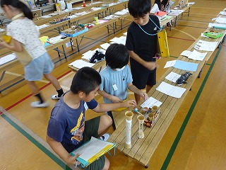 5日(木)と6日(金)の2日間、自由研究展を開催しました。4年生も他の学年の作品のよさを味わおうと自由研究展へ行きました。