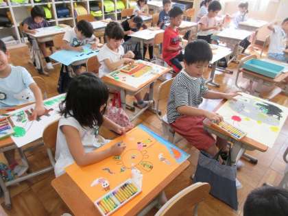 クレパスや絵の具を使って元気いっぱいに描いています!