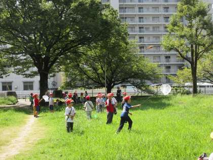 まだまだ暑い中でしたが、虫かごや虫取りあみをもって、みんな一生懸命に生き物を探しました。