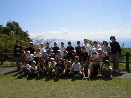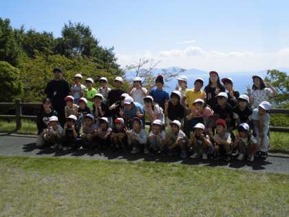 予定通りの時刻に比良げんき村に着きました。お天気もいいので、お弁当の前にまずは学級写真です!