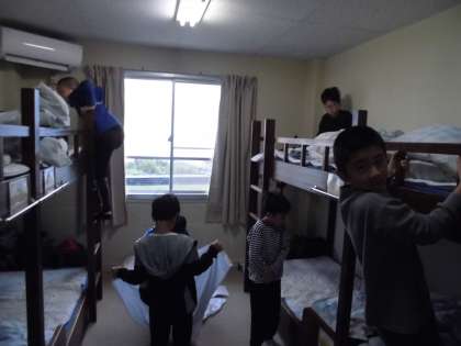 おはようございます。宿泊学習の2日目を迎えました。子どもたちの部屋を見に行くと…。部屋の友だちと協力してシーツを畳んだり、お布団を片付けたりしていました。朝から素敵な姿が見られてうれしくなりました!