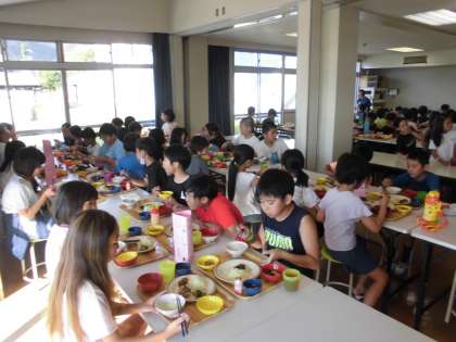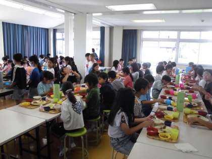 4年生 朝ごはんを食べていかだ作りを頑張るぞ〜