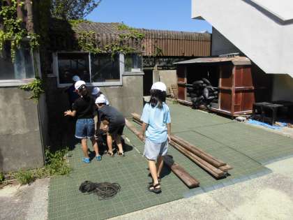 どのいかだも途中でロープがほどけることなく、みんな乗ることができました。昨日と同じく、楽しく活動した後はみんなで協力してお片付けです。グループで声を掛け合いながらスムーズに行動することができていました!