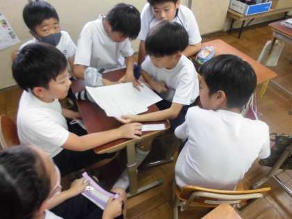 校内のみんなのために自分たちには何ができるかを考え、会社を立ち上げました。校内の掃除をする会社や、1年生の給食配膳や片づけの手伝いをする会社などができました。これから、どのような取組ができるのか、具体的に考え、実行に移していきます。