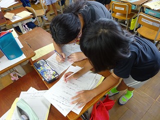 1泊2日の宿泊学習を終えて、2日間の成長を振り返りました。事前に決めた宿泊学習に向けた学年目標や個人目標に向かって、がんばれたことやできるようになったことを見つめ直しました。また、自分では気づいていない頑張りにも目を向けられるように友だちとも交流をしました。