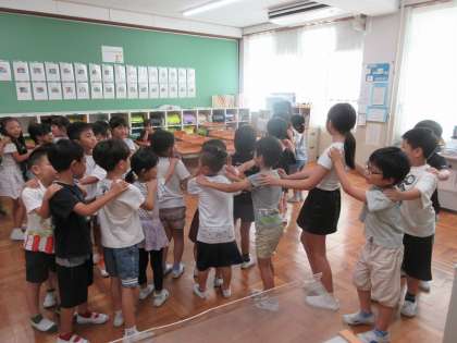 今日の遊びは「じゃんけん列車」。