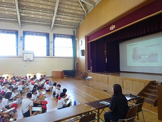 2学期に入り、ハナヤ学習ではエコについて学習を進めています。「小学生への環境学習事業」の一環で、島津製作所の方をお招きして、ごみとリサイクルについて学習をしました。