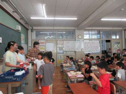 今週は給食の時間に、1年生がまだ慣れていない牛乳パックの畳み方を教えに来てくれました。