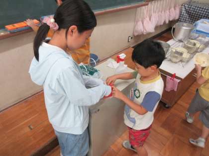 5年生がハナヤ学習(総合的な学習の時間)の一環で、1年生のためにできることを考えてくれています。