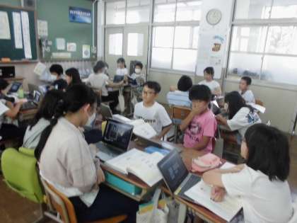 国語科の学習で、学校生活の現状から議題を決め、よりよくするためにどのようなことができるかを話し合いました。2組は、「あいさつ世界一の学校にするためにどのようなことができるか」を議題にして話し合いました。