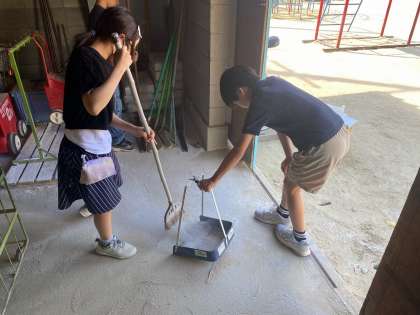 2週間の会社の活動が終わりました。それぞれの会社で、自分たちに何ができるかを考え取り組みました。体育倉庫や新多目的室などのふだん掃除のできない場所の掃除をしたり、他学年を対象にイベントを企画したり、1年生に給食の配膳の仕方や牛乳パックの片づけの仕方を教えたりと、授業時間内だけでなく、休み時間も使って進んで取り組んでいました。