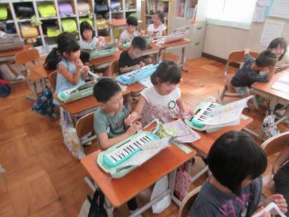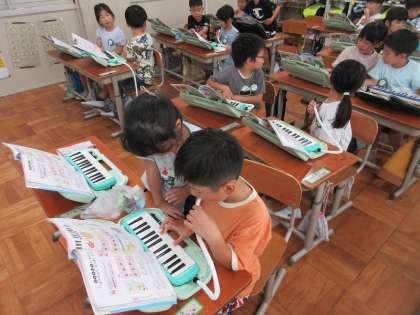 鍵盤ハーモニカを使った学習を進めています。