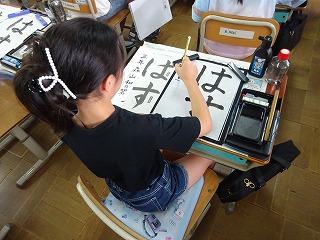 結びの筆使いに気を付けると字形が整うことを確認して、一画一画丁寧に練習をしました。準備から片付けまで集中して取り組むことができました。