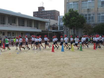 5・6校時に、高学年のリハーサルを行いました。開会式の練習をした後に、徒競走・リレーの待機場所と入退場の仕方などを確認しました。