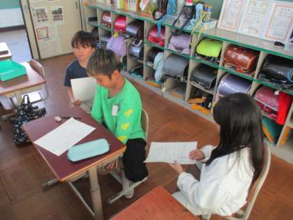 ハナヤ学習では、七三の町に笑顔があふれるようにするためにどんなことができそうか、どんなことをしてみたいかを考えました。「お年寄りの人にむけてイベントをしてみたい」「教えてもらった昔遊びをもっと広めたい」などと話していました。これからどんなことをしていくのかを考えていきます。