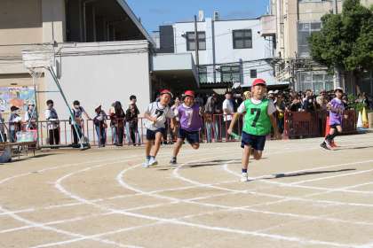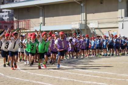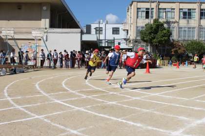3年生の2種目目はリレーです。体育の学習でも、バトンパスやテイクオーバーゾーンでのもらい方など、いろいろなポイントに気を付けて練習しました。本番でも見事なバトンパスをしており、見ごたえがあるリレーだったと思います。全力で頑張る姿が素敵でした!!