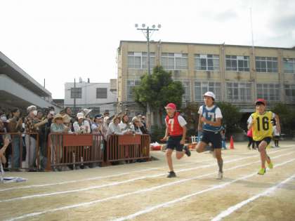 小学校生活で最後のスポーツ大会、3年ぶりに小学校の運動場で開催することができました。徒競走もリレーも、全力でがんばりました。
