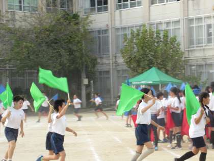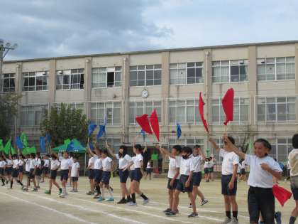 スポーツ大会に向けて練習を開始してからちょうど1か月。団体演技の組体操やフラッグパフォーマンスでは、今までの練習の成果を存分に発揮し、一人一人が力を出し切ってくれました。