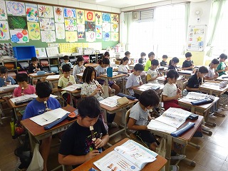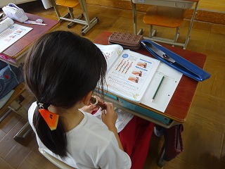 4年音楽「せんりつの重なりを感じ取ろう」サミングの練習をして