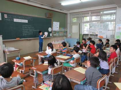今日は1年3組で「みんなのにこにこ大さくせん」のまとめの学習を行いました。