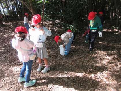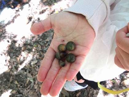 梅小路公園の「いのちの森」で足元をよく見てみると、落ち葉やどんぐりがたくさん落ちていました。